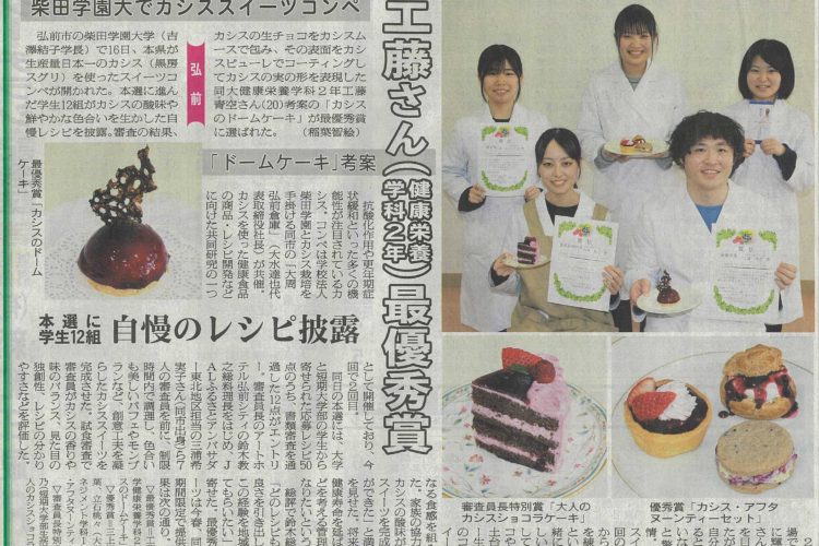 令和6年2月16日(金)に柴田学園大学にて、大周弘前倉庫と柴田学園の共催で「第2回カシススイーツコンペ」を開催しました。 青森県が生産量日本一の「カシス」本来の味や機能性(健康効果)を知ってもらうべく柴田学園大学及び … 続きを読む