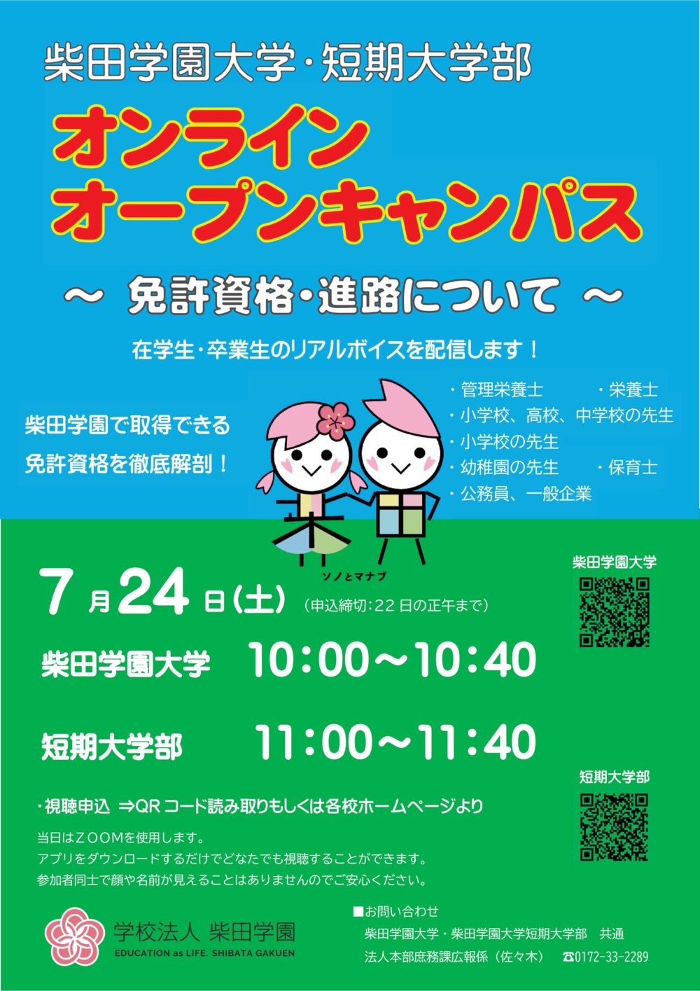 ・申込URL:柴田学園大学:https://forms.gle/m9mBjdognjDYJ7F3A
